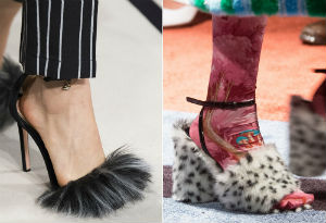 Тренд сезона осень-зима 2017/18 - кислотный мех. Яркие оттенки меха на обуви не только притягивают взгляды, но и подчеркивают его ненатуральность, заявляя таким образом об экологичности меховых детале...